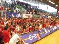 Pünktlich um 11:15 waren fast alle Mitfahrer an der JAKO-Arena versammelt, und kaum warteten wir 90 Minuten, kamen auch schon die letzten beiden Busse (zu spät losgefahren oder Stau – wer weiß das schon so genau?). Vielleicht sollte das Ganze bei den hochsommerlich schwülen Temperaturen aber auch nur eine Vorbereitung auf die Halle in Ludwigsburg sein, vielen Dank aber an den Fanclub für die als Ausgleich spendierten Drinks während der Rückfahrt, Euch traf wahrlich keine Schuld.